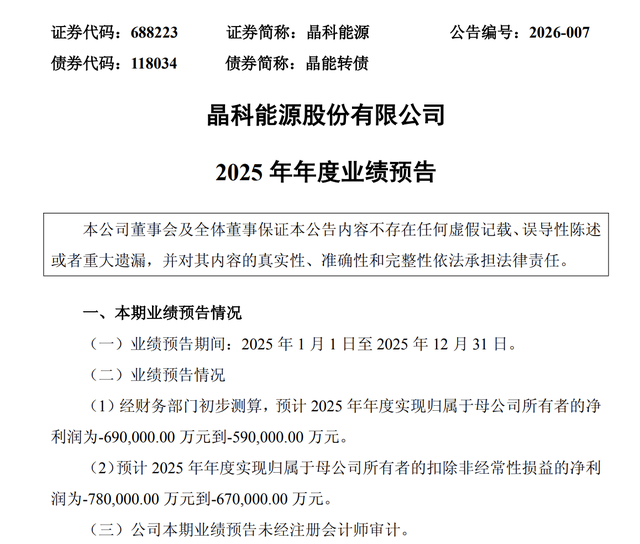 如今,晶科动力果决成为人人光伏巨头,业务隐蔽人人近200个国度和地区,累计组件出货量跳动370GW,约等于2024年中国全年光伏新增装机总量的4.3倍。不外,已往两年晶科动力过得并不好,行业性的产能多余、价钱崩盘让系数光伏企业遇到重挫,晶科动力也不例外。功绩预报显现,晶科动力预测2025年将损失59亿元到69亿元,扣非净利润损失67亿元到78亿元,和旧年同期9837万元的净利润、-9.323亿元的扣非净利润比拟损失有所扩大。