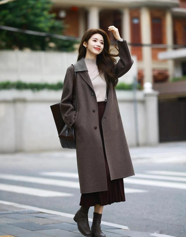 线条干净利落的棕色大衣,不仅进步举座气质,还能高明地拉长体态,营造出一种自信巩固的优雅感。