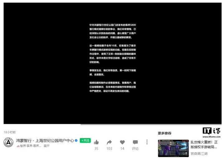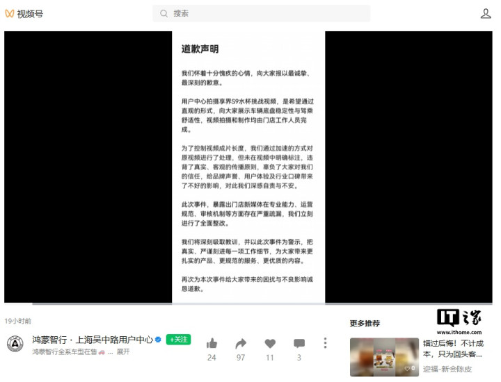 IT之家查询获悉,“新黄河”此前的报谈泄漏称,部分鸿蒙智行区域门店账号在集结平台发布营销视频时,使用加快或倒放视频素材、非法营销。