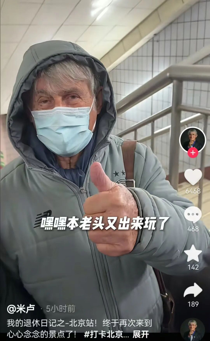 视频伊始,米卢对着镜头竖起大拇指,笑称:“本老翁又出来玩了。”