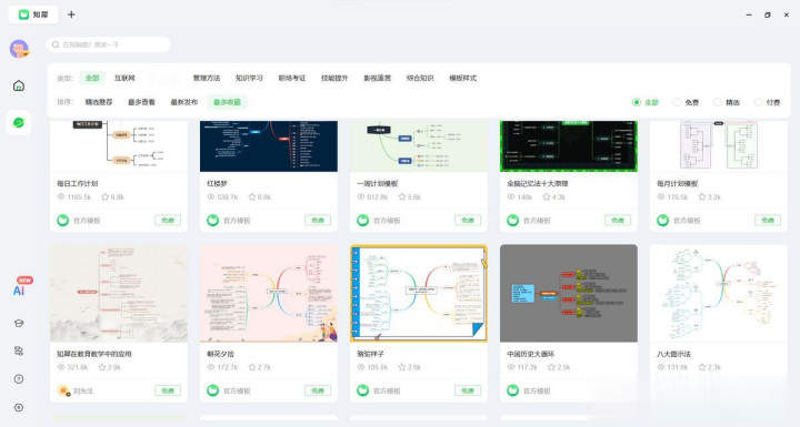 2.多种模板结构:知犀提供18中导图结构和30000+模板库。时分轴样式顺应作念学期计较,鱼骨图顺应分析问题,气泡图顺应头脑风暴。