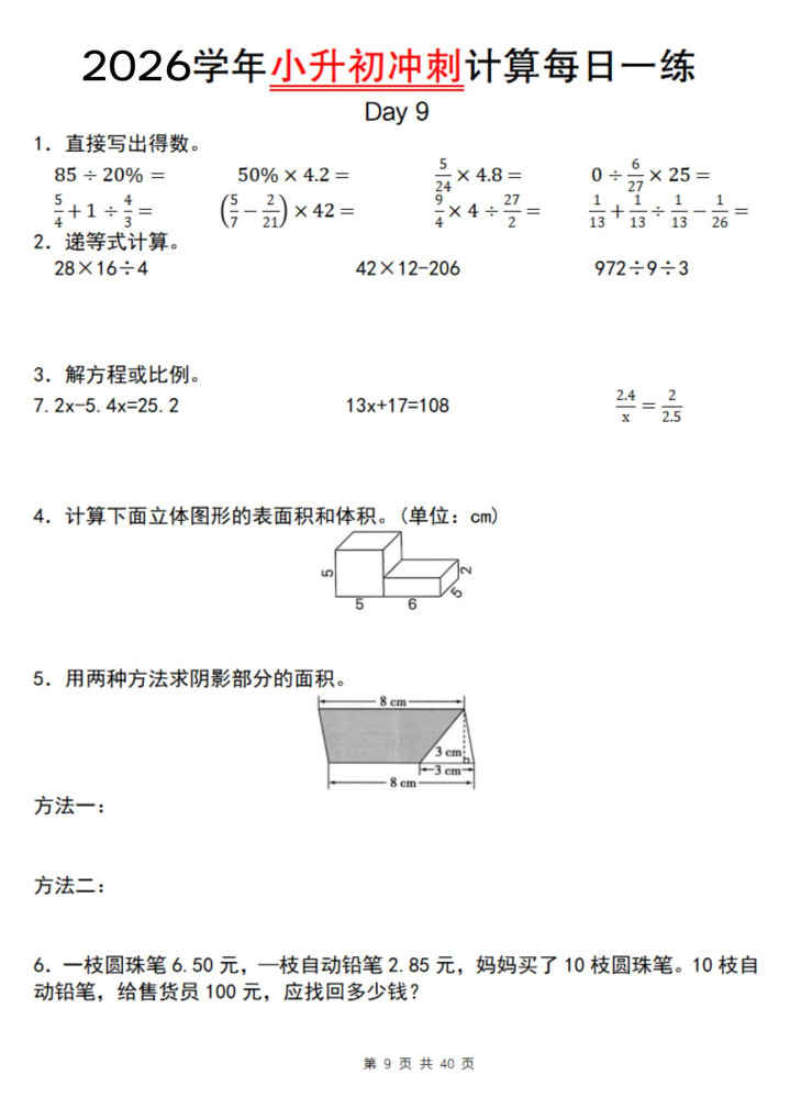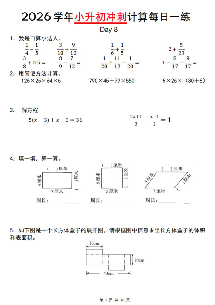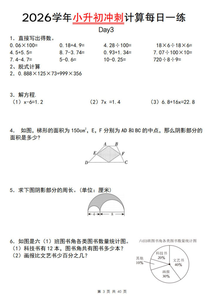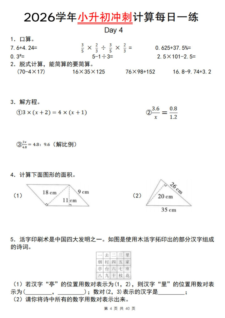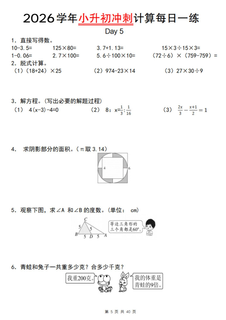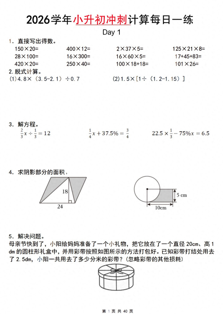 好多家长不知说念,小升初数学最容易提分的不是专揽题,是打算题!打算题有6大类:四则运算、方便打算、方程求解、极少分数羼杂……每类皆有固定套路。我整理了这套专项推行接头,亚搏app官方网站50天攻克通盘打算罗网。惟一按这个节拍练,终末50天孩子至少能多拿15分。今天把完好意思决策共享出来,思逆袭的家长赶快保藏。
