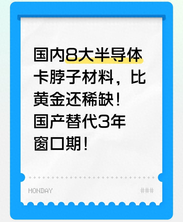 开云app在线体育官网- 亚博app 国内8泰半导体卡脖子材料, 比黄金还稀缺! 国产替代3年窗口期!2026-04-28