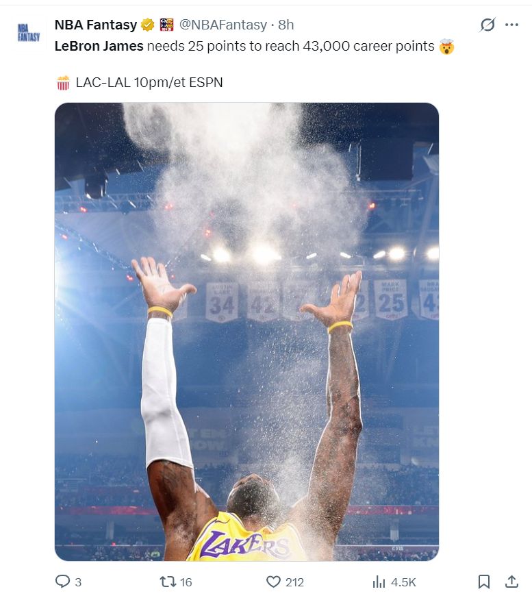 这场比赛是勒布朗潜在的里程碑,他只须拿到25分就能完成43000分里程碑,这是湖东说念主全明星周末后的第一场比赛,老詹开场的手感也可以,外线三分掷中,单节6分钟里3中3拿到7分3助攻1抢断。
