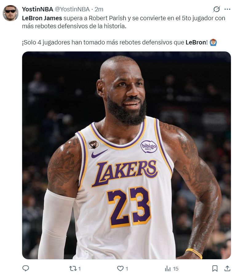 数据媒体写说念:詹姆斯的防患篮板特地帕里什升至历史第五,历史上独一4东说念主的防患篮板比他多。