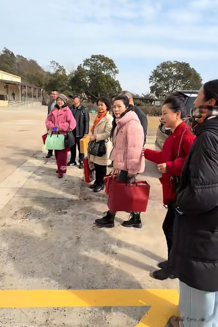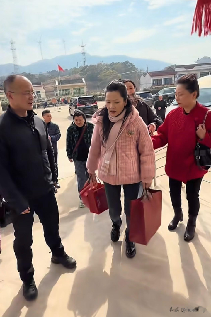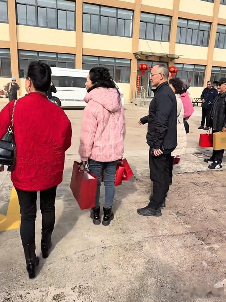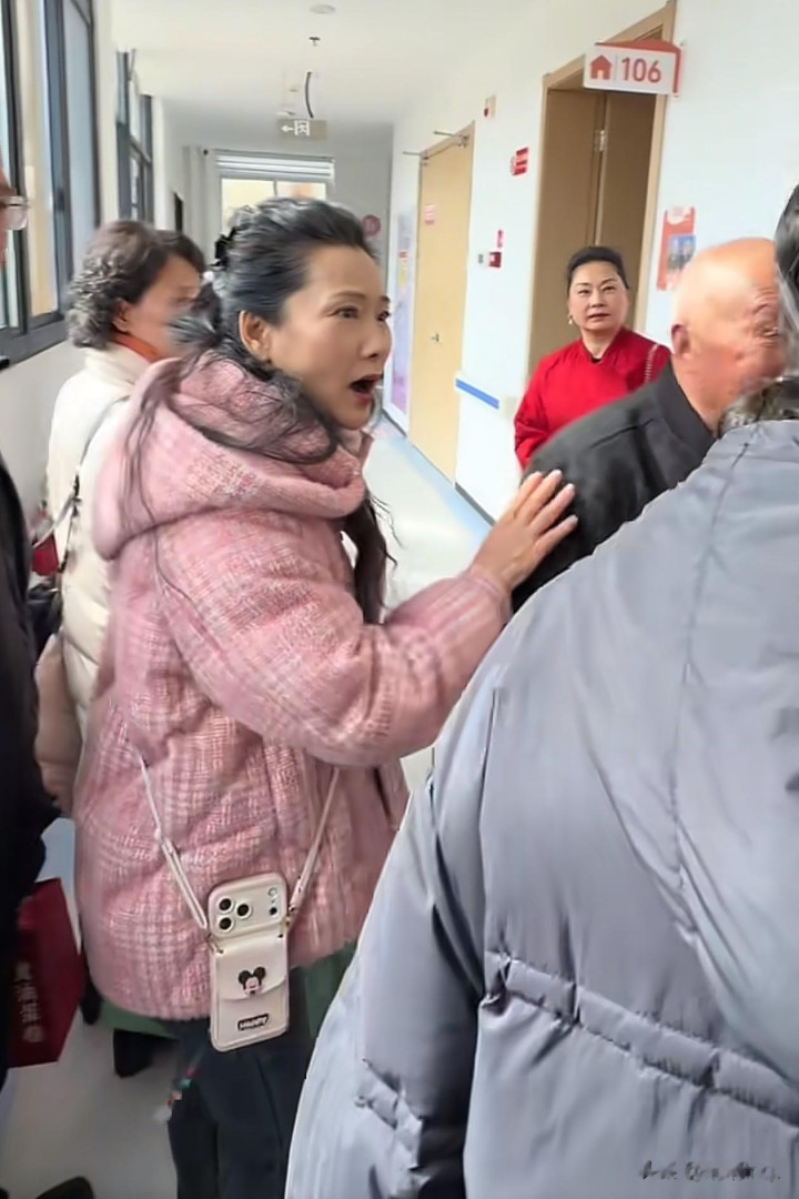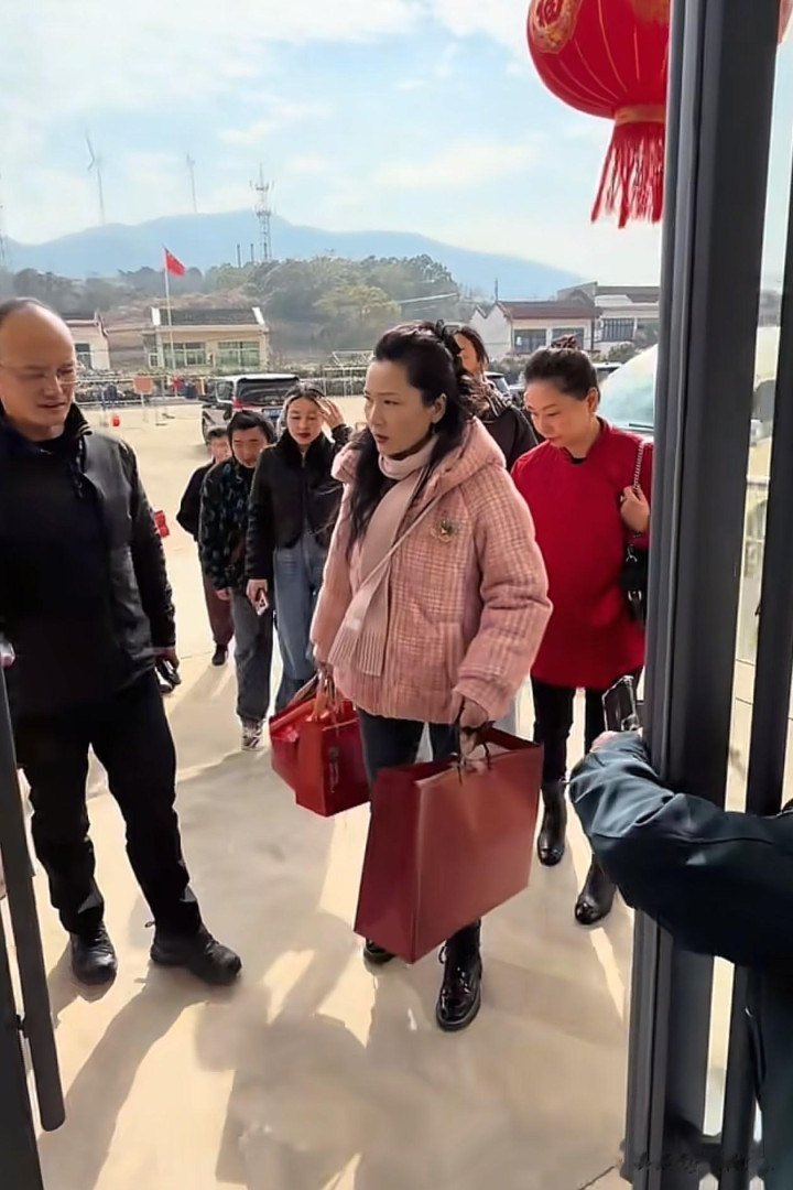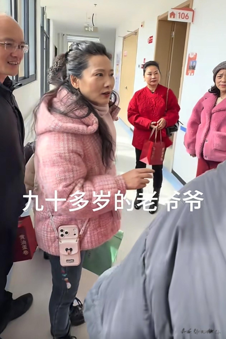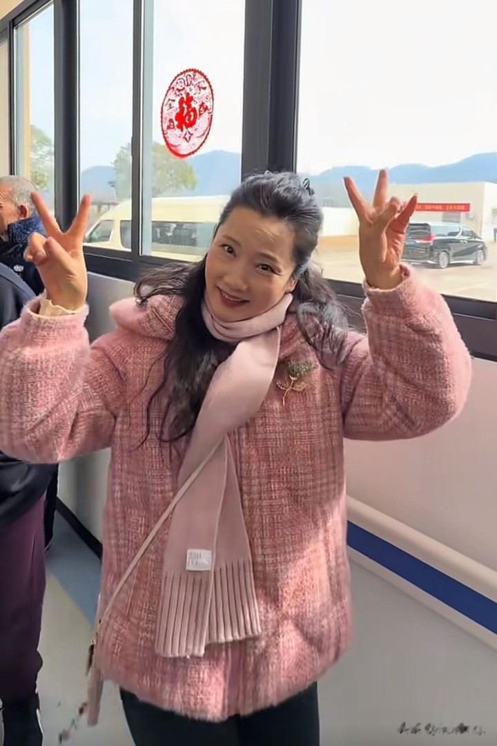 亚博体育 62岁何赛飞过年去敬老院访问老东说念主, 穿粉色棉服+牛仔裤+短靴好减龄