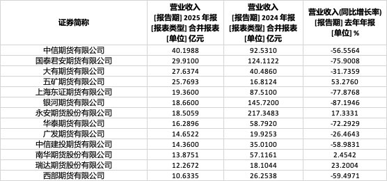 从营业收入规模来看,共有13家期货公司2025年营收冲突10亿元大关。