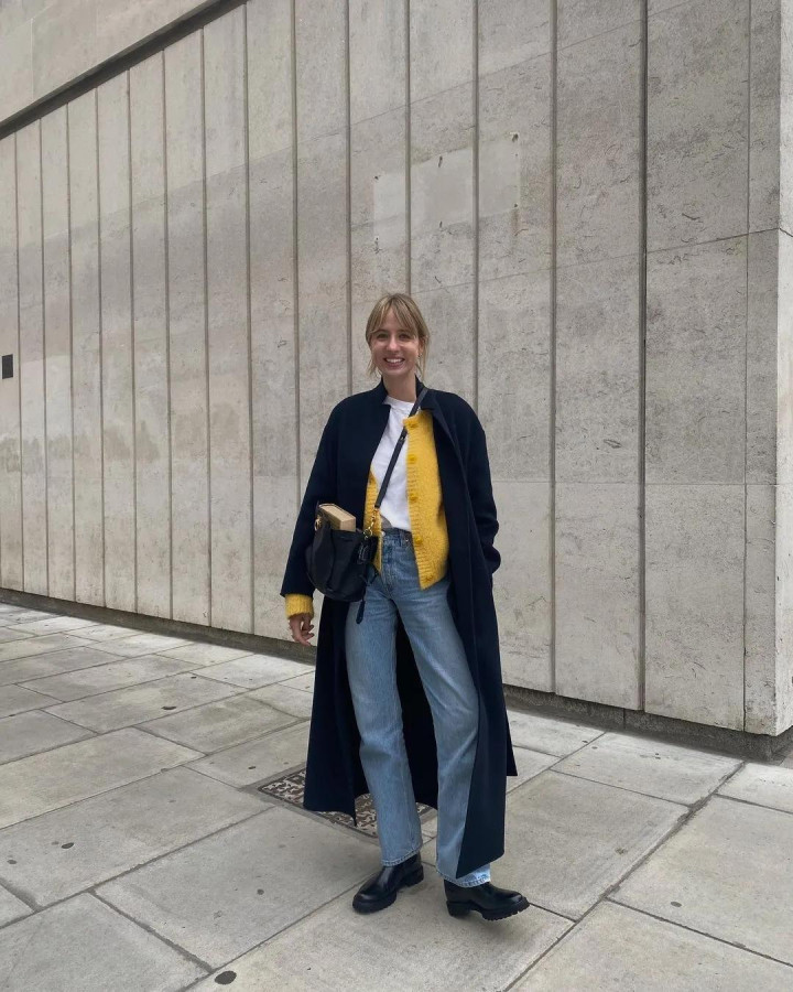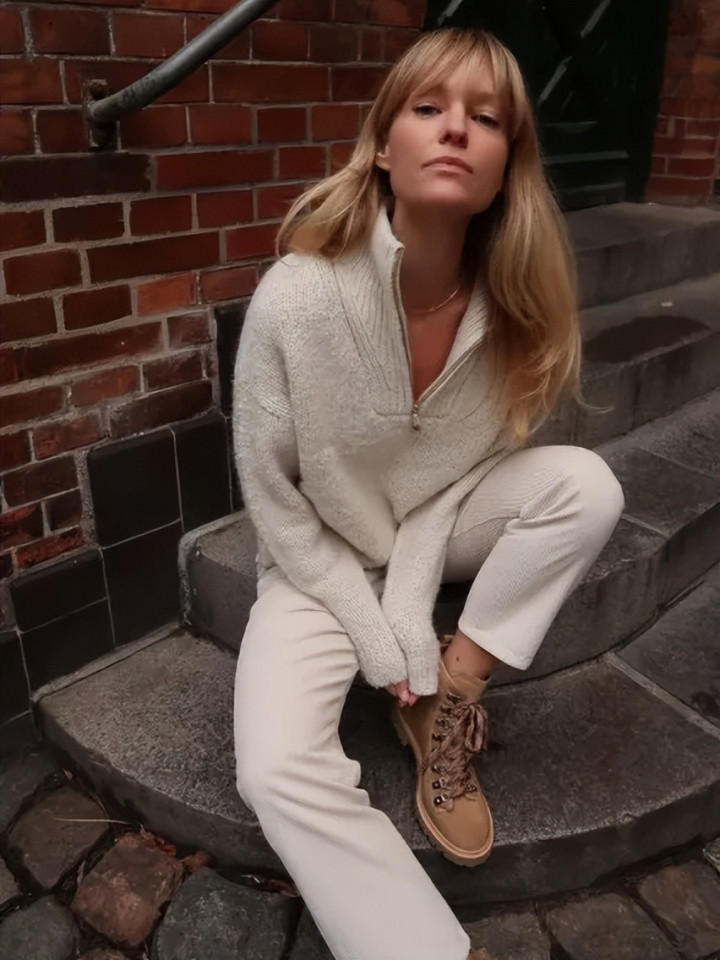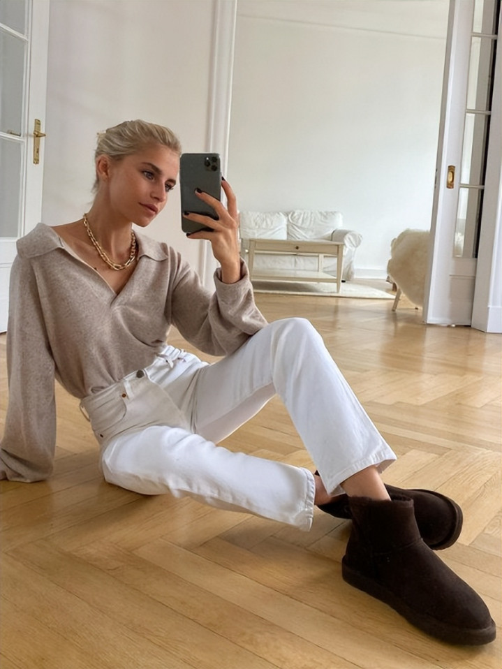 搭配?越浅易越好。一条黑裤子,一对短靴,大毛衣自有其主角光环,无须喧宾夺主。