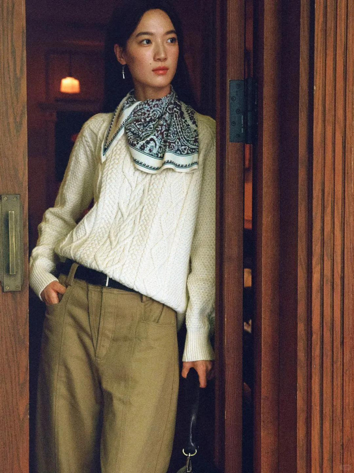 不管藏青、燕麦,亦或是焦糖橘,惟有套上绞花,通盘东说念主就好似被薄暮给照过,概括都变得柔软起来。